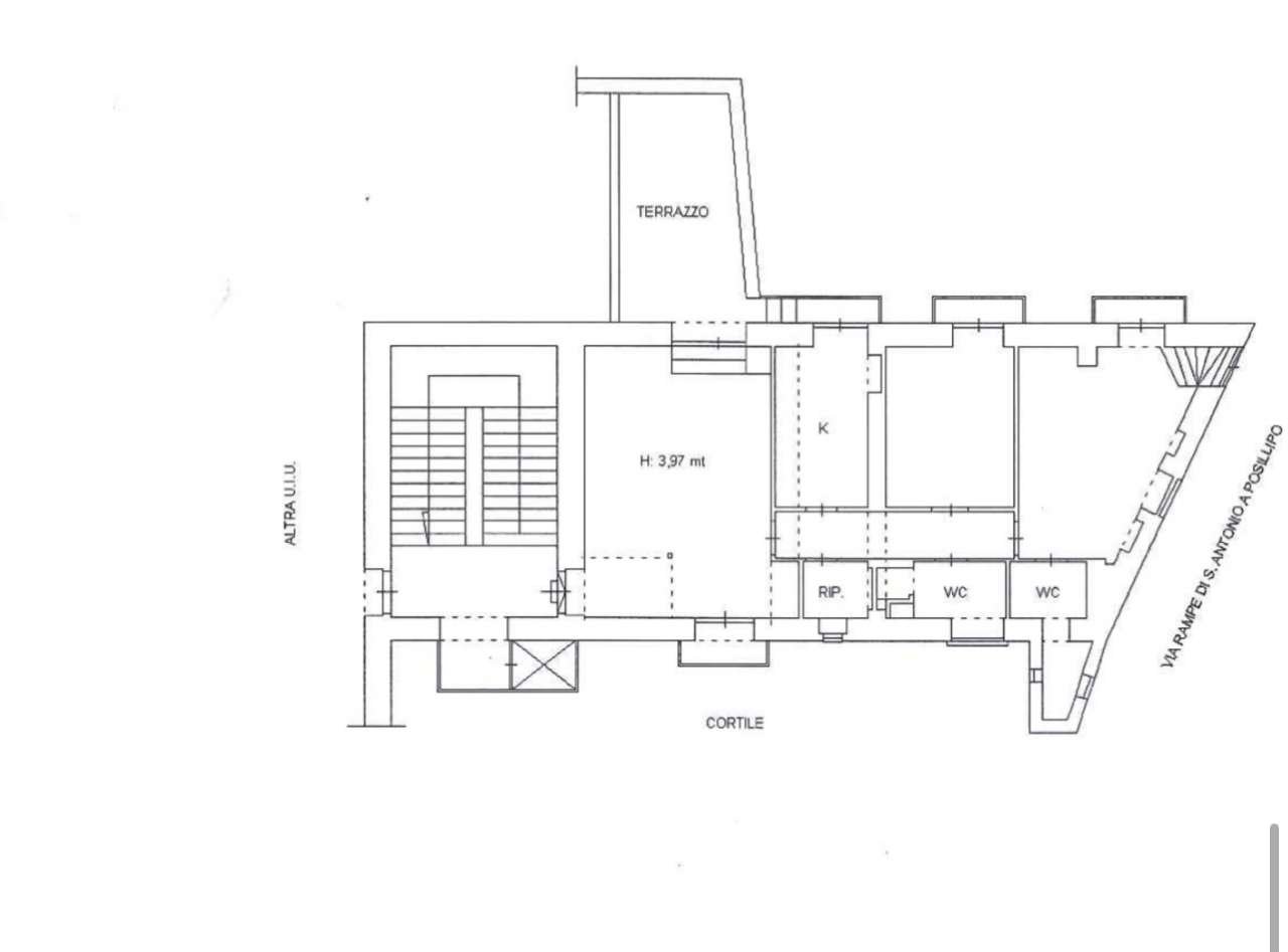 L'appartamento molto silenzioso in quanto orientato in direzione delle rampe di Sant'Antonio e' dotato di un secondo accesso da tale strada.